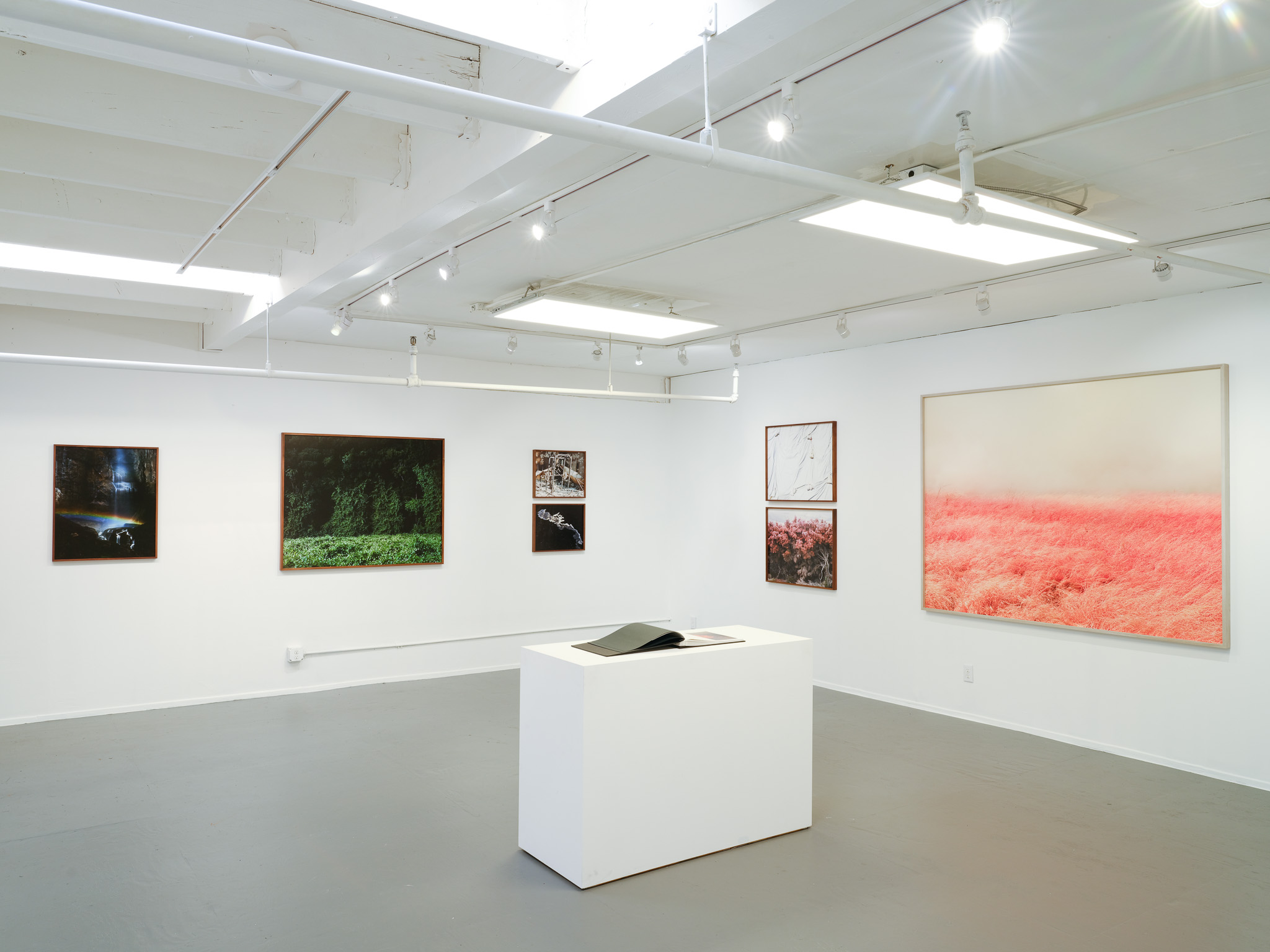 In Light Years presents 16 landscape photographs by Andrew Owen that follow storylines of ecological transformation during California's recent cycles of megafires and floods. From 2021-2025, Owen traveled extensively across the state documenting communities and environments on the frontlines of extreme weather. Working primarily with a 4x5 view camera, his approach shifted towards the outskirts and along conceptual boundary lines. Here he could observe the intermixing of ecological change, community disruption, traces of the sublime, and everyday vernacular textures abstracted into the mythic realm. Unbound by linear narratives, Owen's photographs wander out into the stars and follow the moon just as they stand in the ashes of burned books or in fields of pink grass covered in fire retardant. The presence of supernatural beauty alongside landscapes in peril is a central tension holding this body of work together. At the heart of In Light Years is the urge to see the climate crisis more imaginatively and expansively through wider ecological and mythic frameworks.